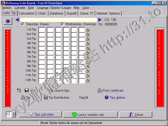 • Hoffmann Lotto-Experte 6 aus 49 v3.2.0.32 英文正式版(彩票選號助手軟體)